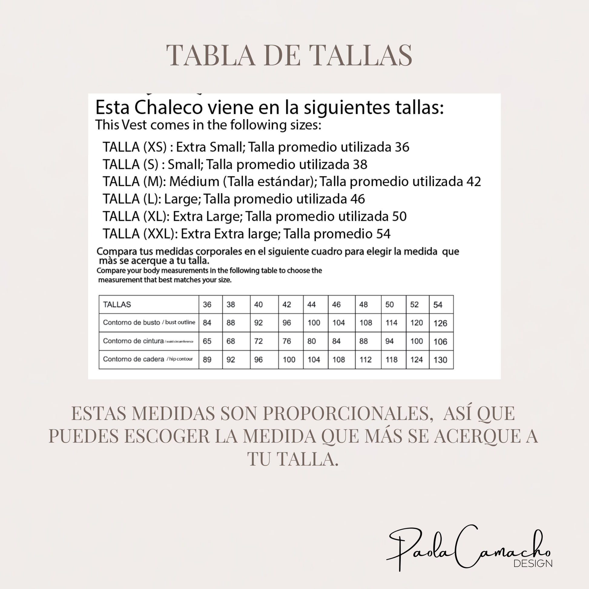 Patrón digital de chaleco talla XS, S, M, L,XL y XXL: compara tu talla en el cuadro que está en la imagenes.