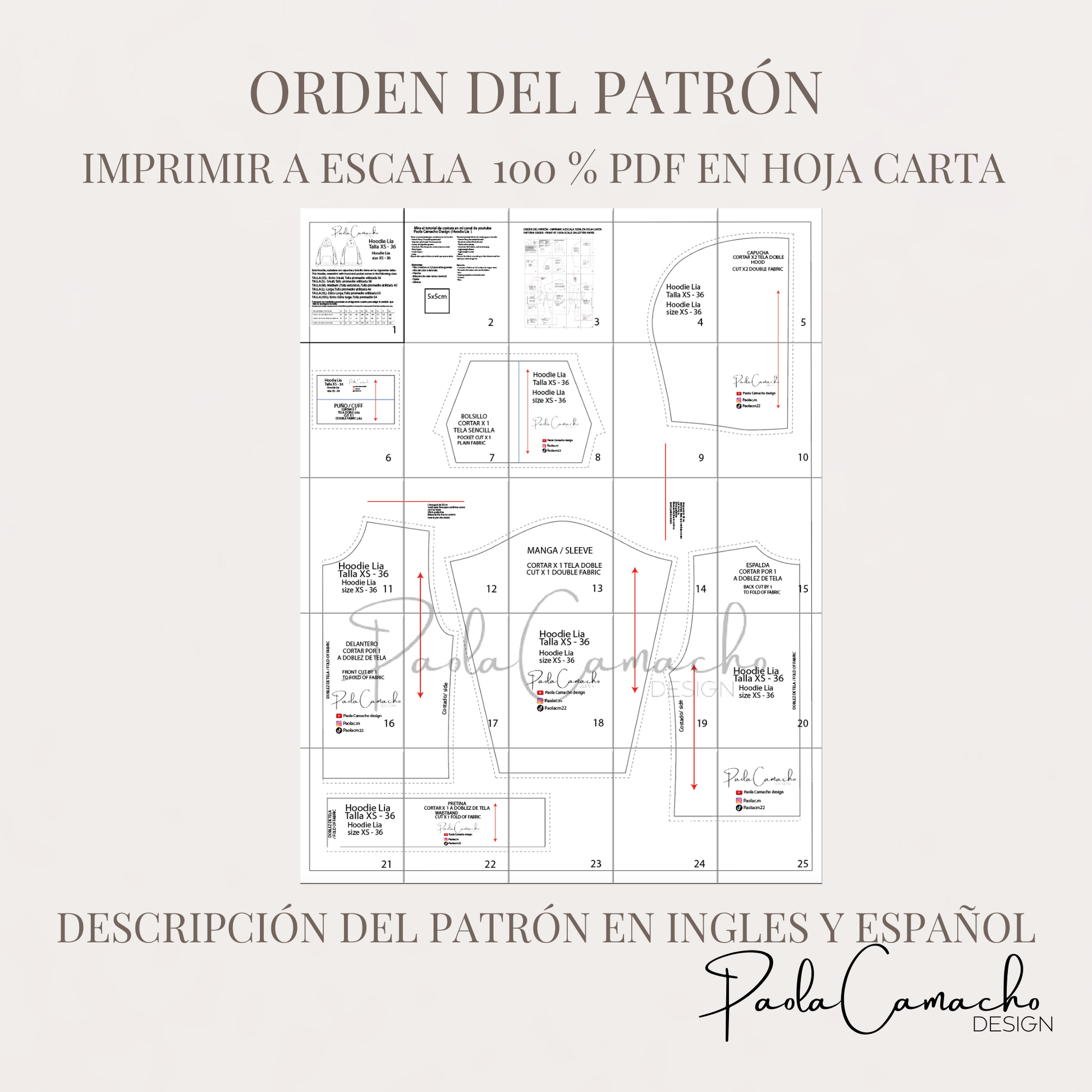 🧵 Patrón de costura Hoodie Lia – PDF Tallas XS a XXL (Hoja Carta)